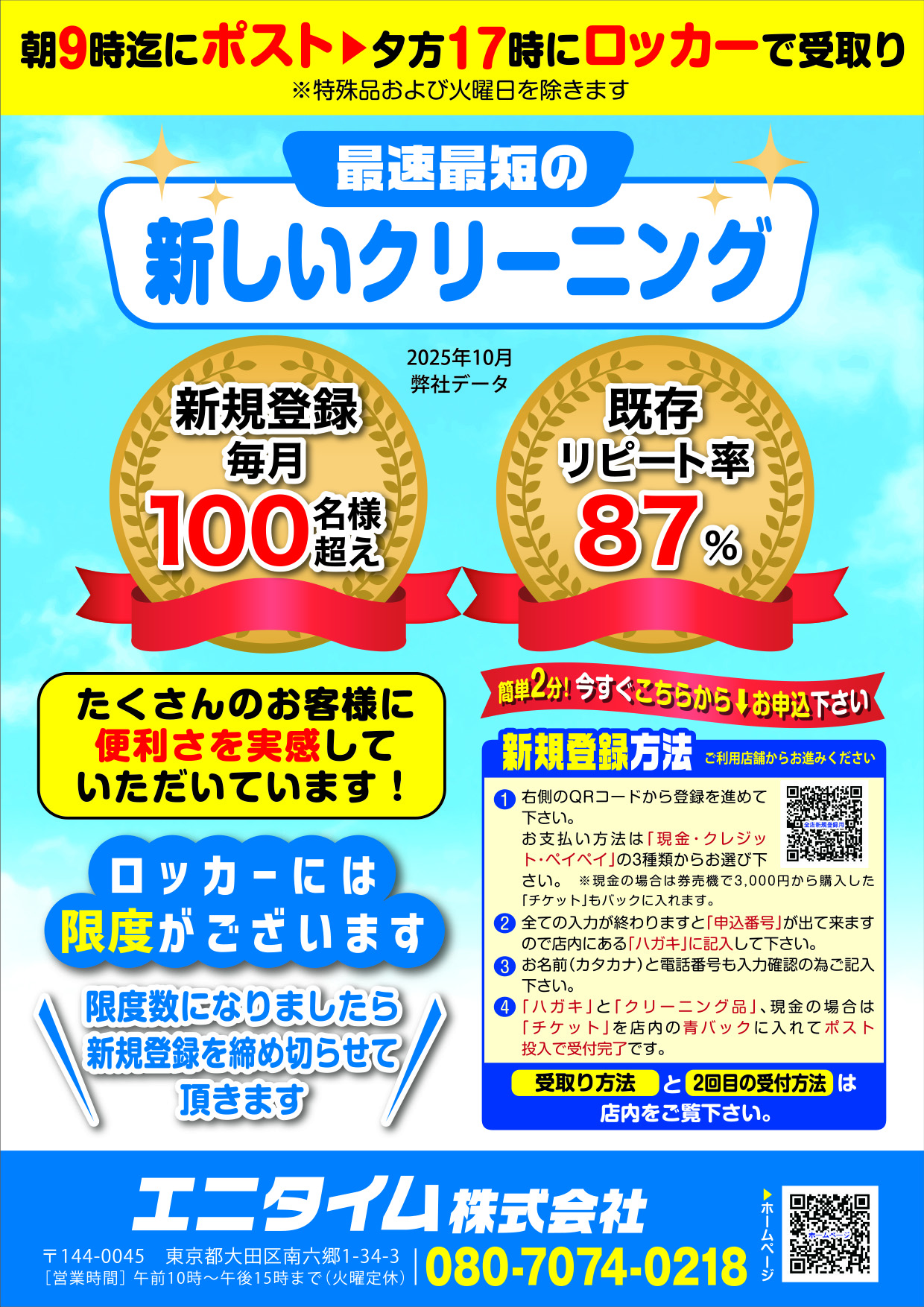 ロッカーのダイアルは登録電話番号の下4桁で開きます